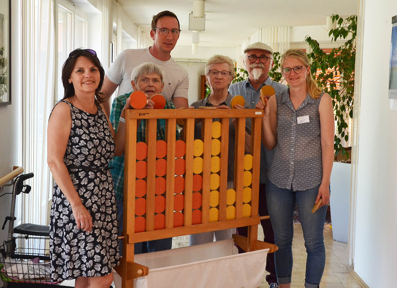 Das Thema Nachhaltigkeit, der rücksichtsvoller Umgang mit den Ressourcen, all das rückt immer mehr in den Fokus der Gesellschaft. Auch im Unterricht der BFS-Holztechnik wird darüber gesprochen, um Schüler für das Thema zu sensibilisieren. Nach dem in einer Reihe von Klassenräumen die Bestände an Schulmobiliar ausgetauscht wurden, sind die alten Tische und Bänke der Entsorgung zugeführt worden- oder besser: Sollten zugeführt werden. Da das Thema Upcycling im Unterricht der Klasse behandelt wurde, haben die Schülerinnen und Schüler mit ihrem Techniklehrer Josef Greinert die Massivholzteile aus Buchenholz abgeschraubt und in der Holzwerkstatt eingelagert. Gemeinsamen überlegte die Klasse, ein Holzspiel zu bauen. Die Planung nahm Fahrt auf und es wurde fleißig gezeichnet und diskutiert. Das Ergebnis der Planung war ein Holzrahmen, in den man runde Würfel hineinlegen kann. Der Spieler, der zuerst eine Reihe mit vier Würfeln besetz hat, hat gewonnen. Nun wurde fleißig gesägt, gehobelt, gefräst und zusammengebaut. Entstanden ist ein Spiel aus Buchenholz mit Würfeln aus MDF-Platten mit bunten Melaminplatten beklebt. Nach der Fertigstellung fiel die Entscheidung, das Werk dem Von-Broichhausen-Stift in Kempen zu spenden. Dort soll es den Alltag der alten Menschen bunter gestalten. Schulleiterin Elke Terbeck und Techniklehrer Josef Greinert freuen sich, dass Spiel an die Seniorinnen und Senioren zu übergeben.