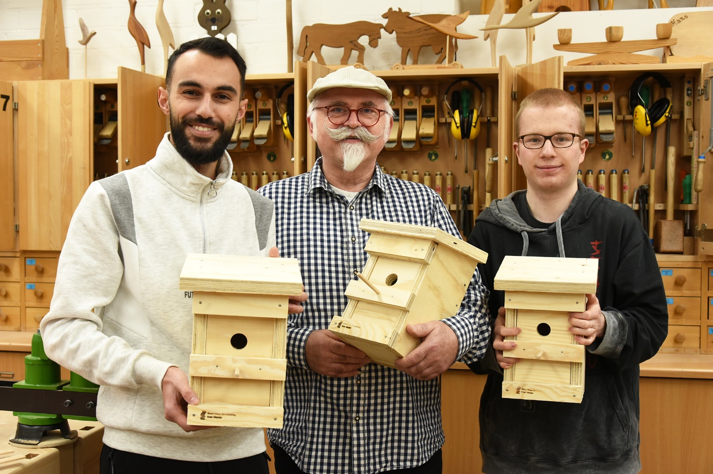 Umweltschutz und nachhaltiges Handeln sind in Kempen Programm, wobei manchmal auch kleine Hürden zu überwinden sind. So hat die Stadt an verschiedenen Objekten ein Wärmeverbundsystem verbaut und musste feststellen, dass sich Vögel an den verwendeten Platten zu schaffen machten. Durch Tests erfuhr man nun, dass Nistkästen Abhilfe schaffen könnten. Auf der Suche nach solchen Nistkästen ist der Mitarbeiter des Hochbauamtes Klaus Rückwardt nach einem Tipp des Umweltreferenten der Stadt Kempen auf das Rhein-Maas Berufskolleg gestoßen und hat Kontakt aufgenommen. Das war die richtige Idee, denn im Rahmen des Unterrichtsthemas „Holzverbindungen“ in der einjährigen Berufsfachschule entstand bereits vor einiger Zeit die Idee, Nistkästen zu bauen. Hierbei werden die Schülerinnen und Schüler im Bereich „Nagelverbindungen“ unterrichtet, wobei sich der Lehrplan und der Wunsch der Stadt Kempen, eine umweltfreundliche Lösung eines Problems, nun in bestem Einklang befinden. Gemeinsam mit dem Techniklehrer und Leiter des „Kompetenzzentrums Holz“ am RMBK, Josef Greinert, haben dann die Schülerinnen und Schüler das Holz zugeschnitten, gebohrt und zusammengenagelt. Das Holz stellte die Dachdeckerfirma Uli Schütten GmbH & Co. KG aus Wachtendonk zur Verfügung „Die Nistkästen werden den künftigen Bewohnern große Freude bereiten“, sagt Greinert. Bei einem Ortstermin konnte Klaus Rückwardt im „Kompetenzzentrum Holz“ ein Musterexemplar in Augenschein nehmen. Er bestellte 15 Stück, die nun zeitnah verbaut werden. Auch die Schülerinnen und Schüler freuen sich über das gelungene Projekt, für die Natur und den Menschen.